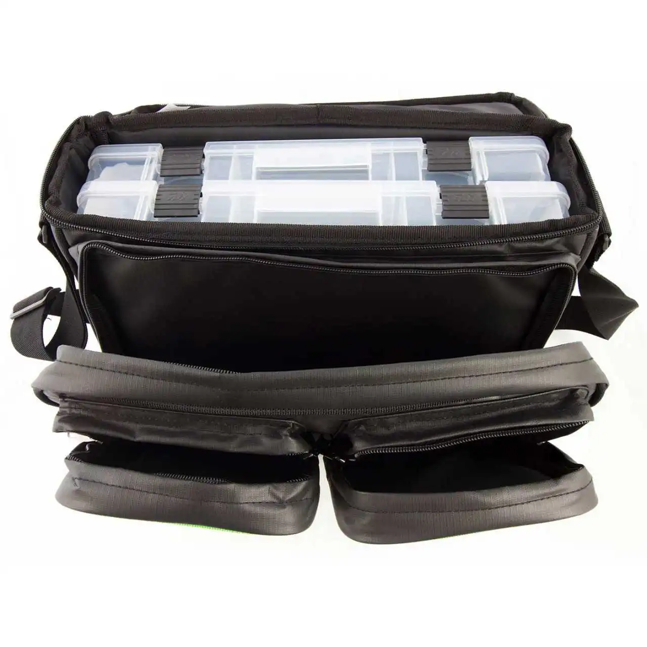 - inklusive 2 großen Tackle Boxen (36 x 22,5 x 5,5cm) und gepolstertem Schultergurt