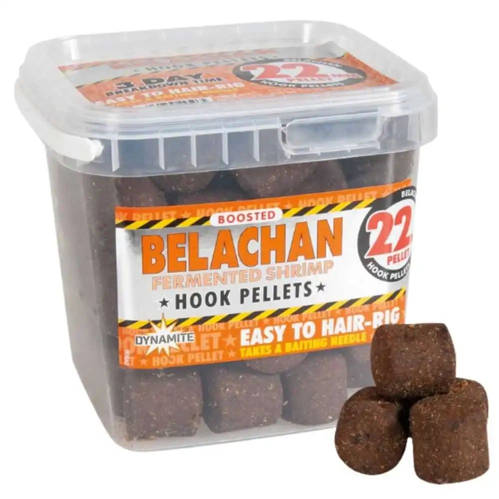 Beim Belachan Hook Pellet von Dynamite Baits werden die Technologien von Boilie und Pellet kombiniert. Die Hook Pellets sind weich, aber fest genug um als Hakenköder für Welse und Karpfen eingesetzt zu werden. Sie sind optimal für Hair-Rigs geeignet, ohne gebohrt werden zu müssen. Durch die perfekte Konsistenz bleiben die Pellets sehr lange für die Fische attraktiv (die Auflösezeit beträgt ca. 3 Tage). In einer Packung sind ungefähr 30 Hook Pellets enthalten.