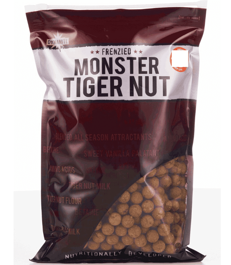 Die Firma Dynamite Baits bietet mit dem Monster Tiger Nut Boilies ein einzigartiges Tigernuss-Mehl plus texturierten Tiger-Walnüssen und Tigernuss-Milch als natürlichen Flüssiglockstoff.