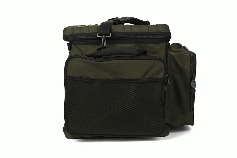 Der R-Series Barrow Bag XL bietet ein innovatives Material aus vorbehandeltem 400 Denier Polyester welches äußerst robust und wasserfest ist, sowie hochrobuste 10mm-Doppelreißverschlüsse, versteifte abgerundete Basis- und Deckenelemente, zwei Außentaschen für kleineres Zubehör, zwei zentrale Fronttaschen für die Aufnahme der Tacklebox und weiteren Utensilien, einen abnehmbaren gepolsterten Schultertragegurt und versteifte EVA-Tragegriffe.