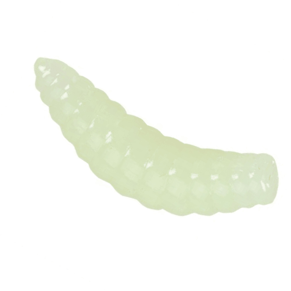 Eine extrem weiche Gummimischung in Form einer Bienenmade sorgt dafür, daß die Forelle den Köder bedenkenlos annimmt, ihn festhält, und nicht gleich wieder ausspuckt. So wird die Zeit nach dem Biss zum Setzen des Hakens effektiv verlängert!