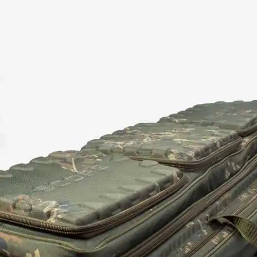 Die Scope Ops R10 Transporter ist wohl die klügste Lösung um drei fertig montierte 10ft Scope Ruten zu transportieren. Wenn du die Ruten entnimmst siehst du zwei mit Reißverschluss verschließbare Fächer. Eines ist für deine Ausrüstung und das andere ist ein isoliertes Fach, um deine Lebensmittel und Köder frisch zu halten. Wenn du die R10 Transporter Tasche wieder schließt siehst du oberhalb drei mit EVA verstärkte Hauptfächer. Diese sorgen dafür, dass dein wertvolles Tackle geschützt wird und trotzdem jederzeit griffbereit bleibt.