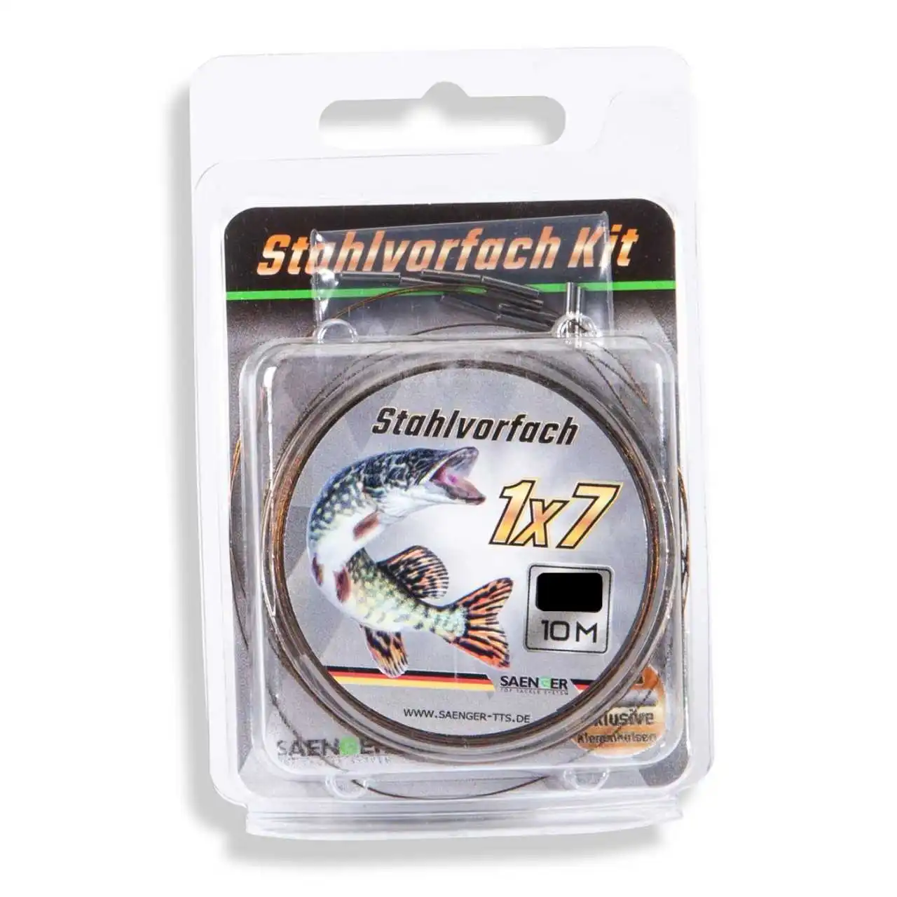 Hochwertiges Stahlvorfach-Set für den Raubfischfang mit einer hohen Tragkraft. Diese Raubfischvorfächer sind aus 7 einzelnen Stahlfäden gewickelt.