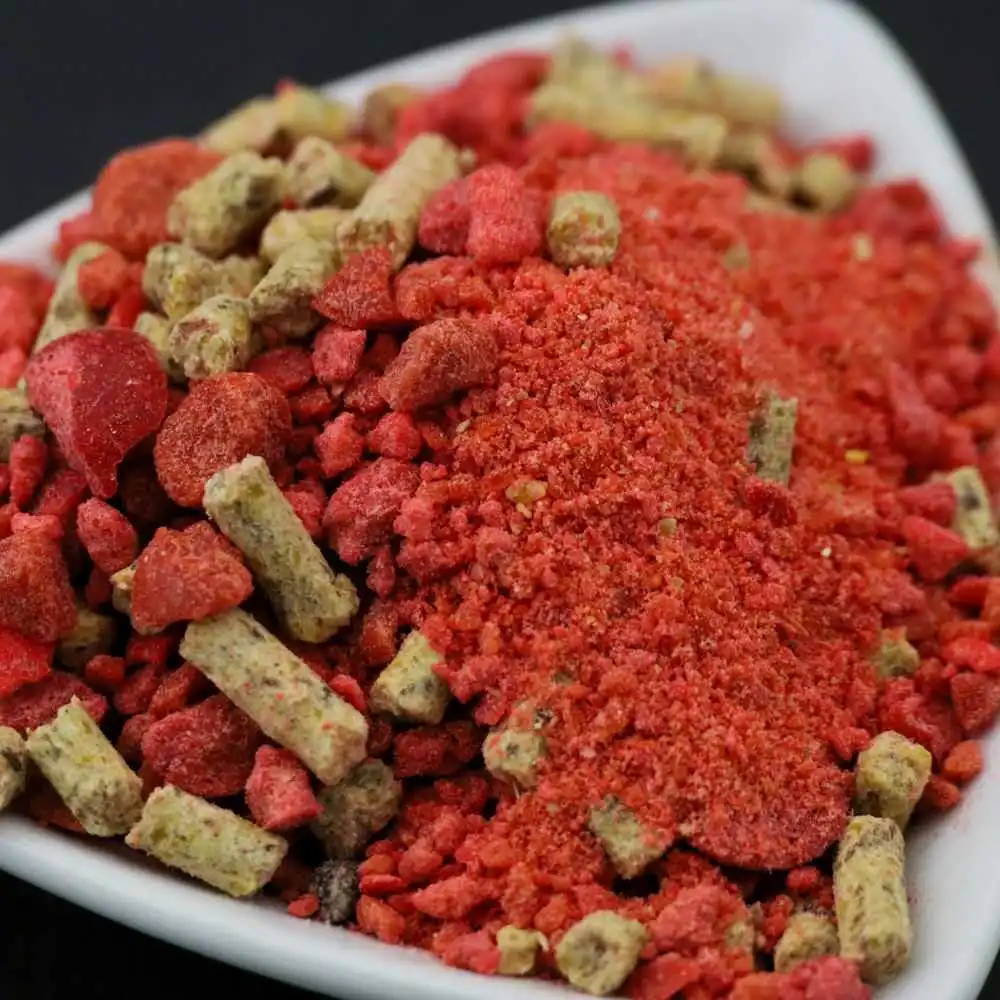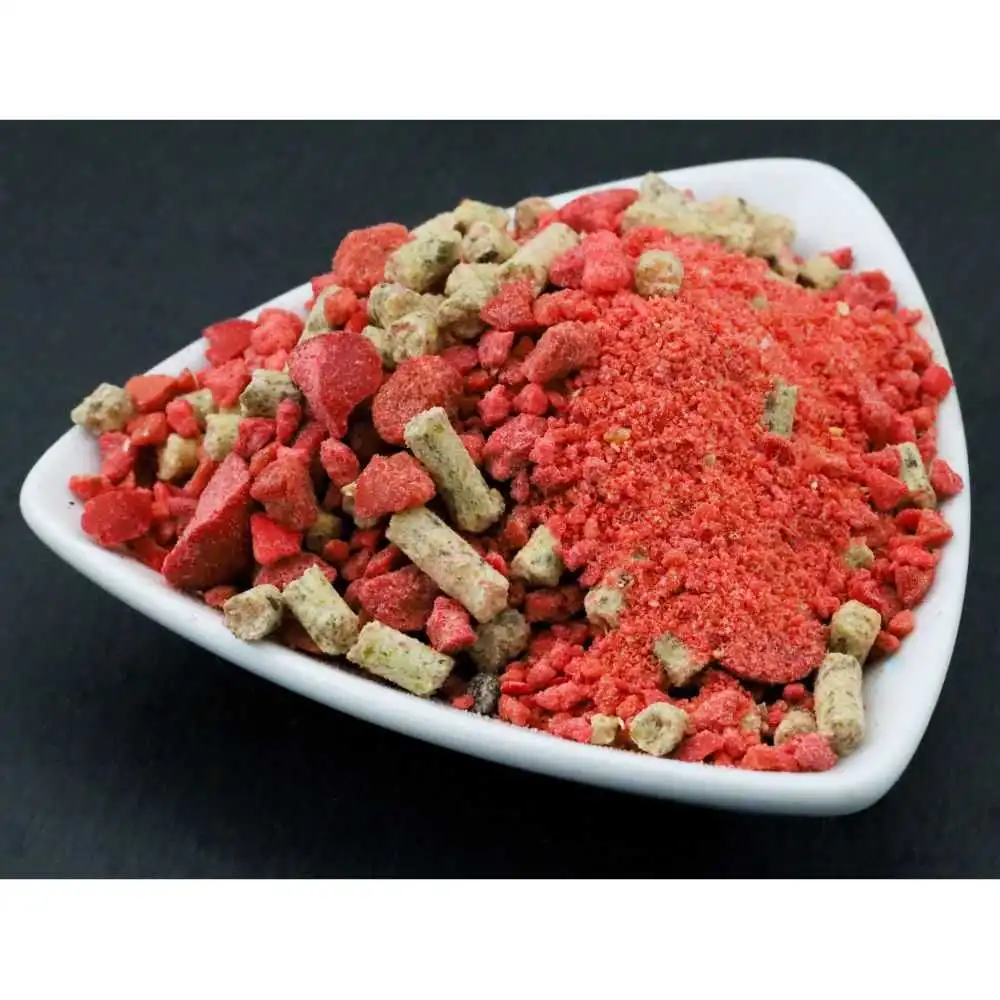 Dieser Pellet-Mix besteht aus Mais Pellets, gecrushten Boilies und Ei-Cake. Er hat ein intensives Erdbeere-Vanille-Aroma. Dieser gröbere Mix eignet sich ideal zum Fischen auf größere Karpfen. Er ist perfekt als Spod-Mix oder gemixt mit Partikeln oder Boilies. Das bringt dir den Extra-Fisch!