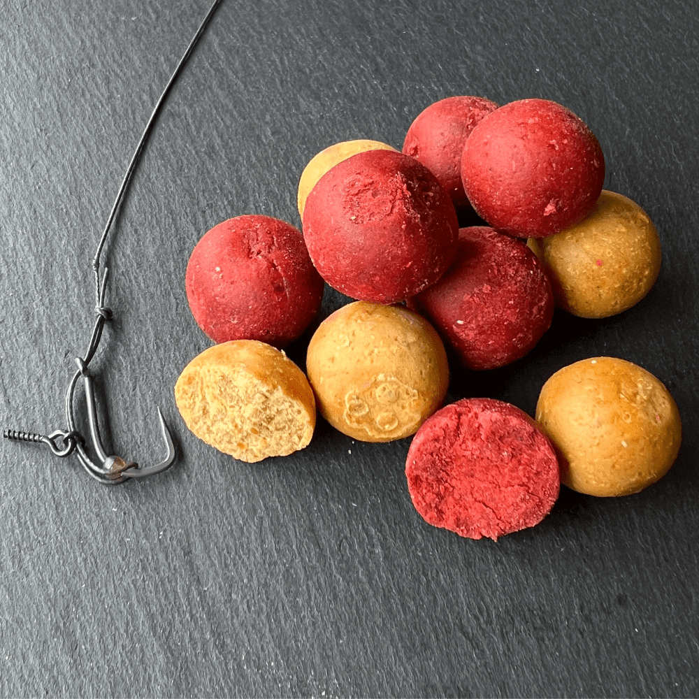 Die Robin Red Gold Edition R33 Boilies sind zweifarbige Boilies in gelb-rot mit einem krätig-würzigen Robin-Red-Aroma. Dieser Boilie bringt immer Fisch!